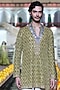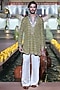 Featuring a heena green kurta in velvet base with marodi embroidery. It is paired with ivory linen satin pants. Style it with pair of loafers and a watch for a traditional look, Perfect attire for a festive occasion or mehendi ceremony.